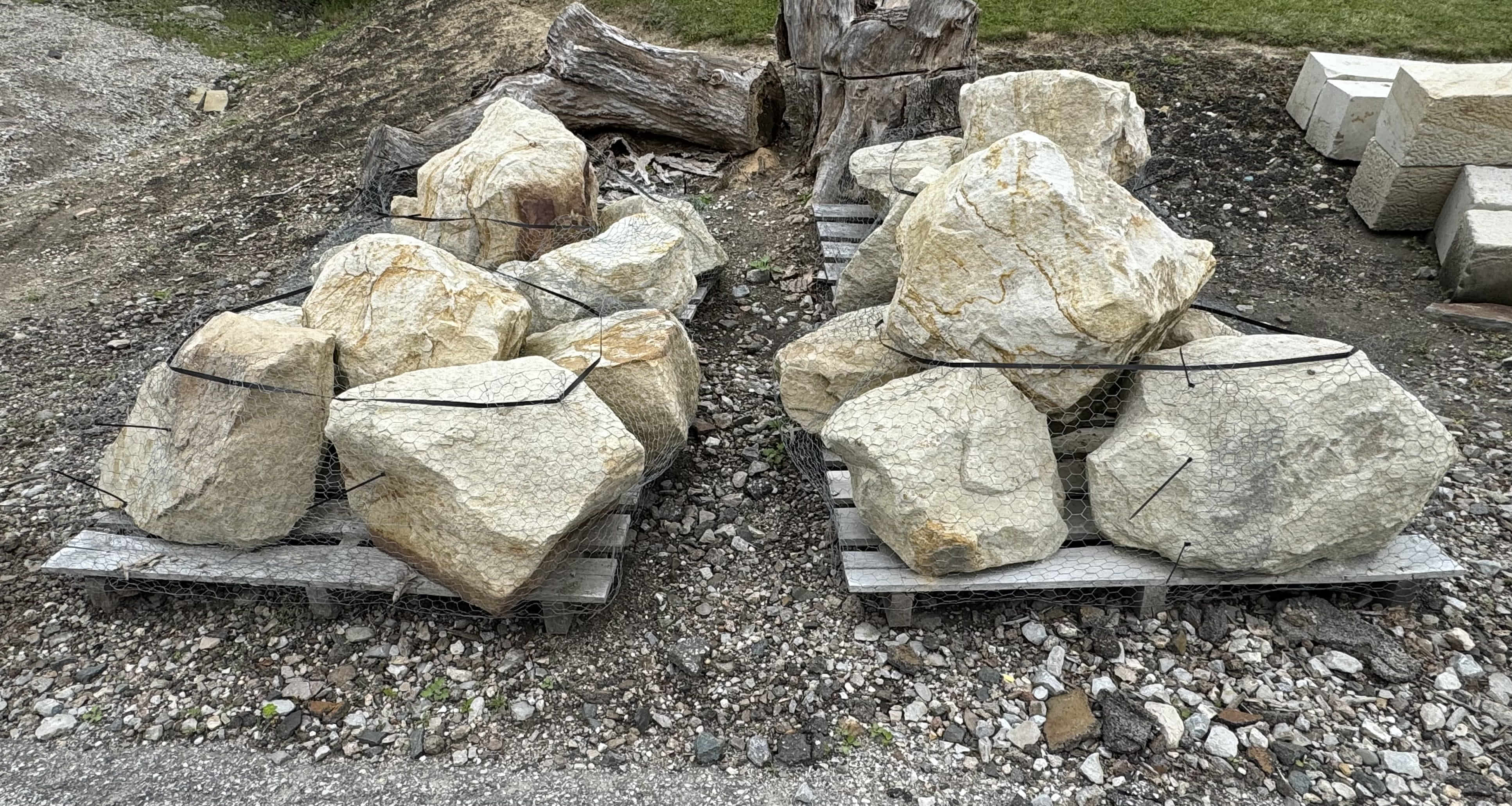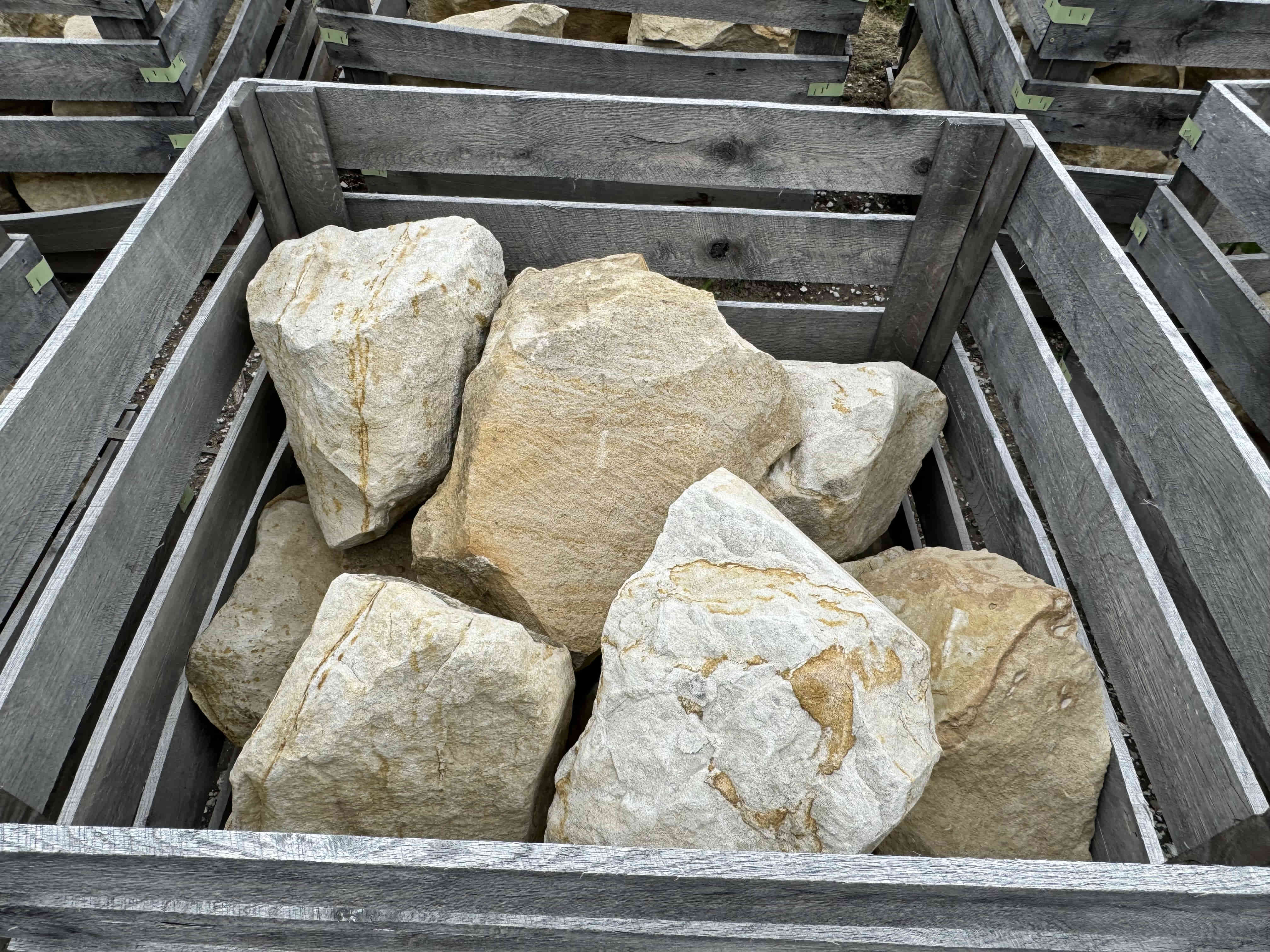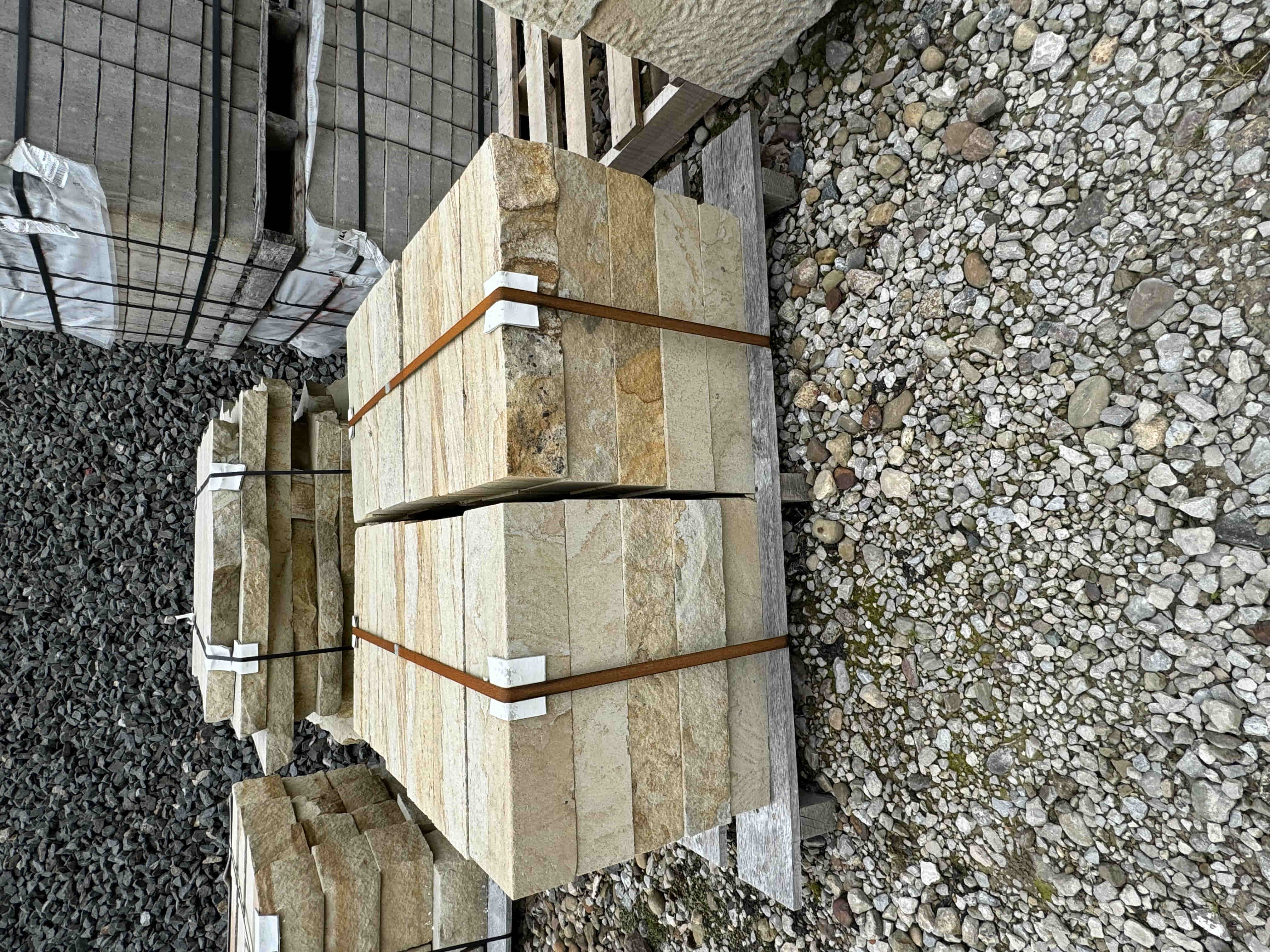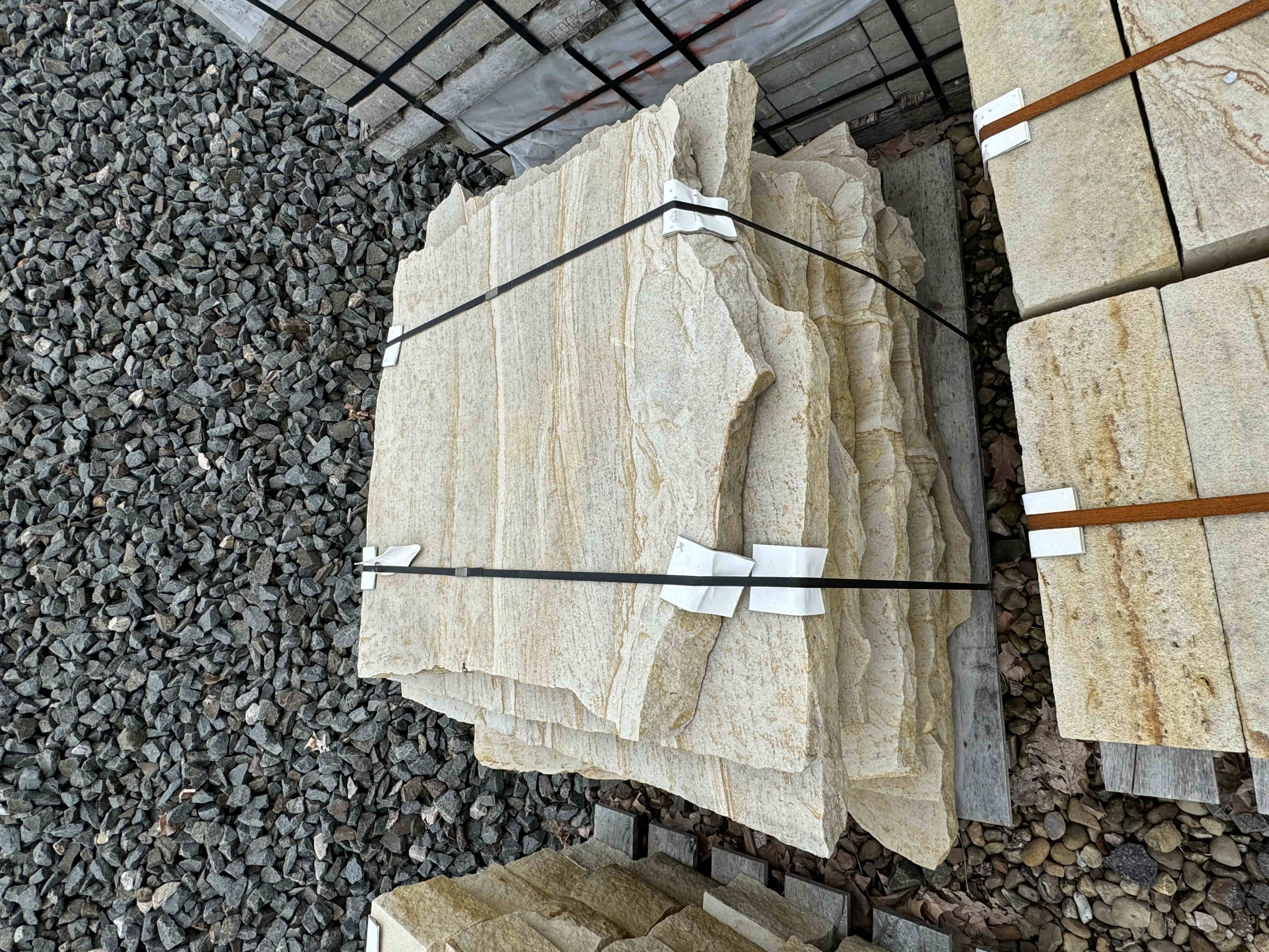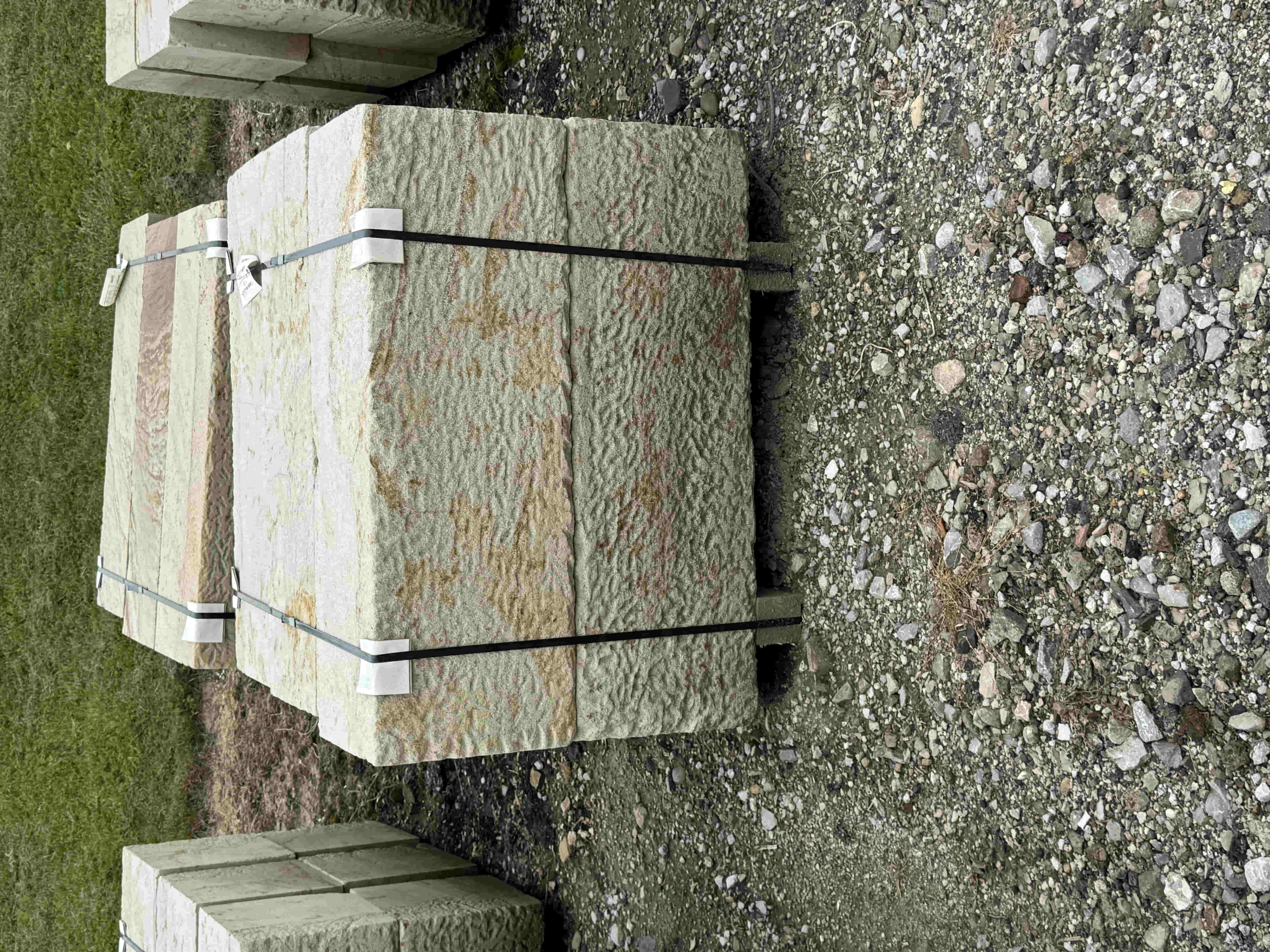 Briar Hill Sandstone is sold by the piece or by the pallet. It is used for walls, coping, patio, or steps.