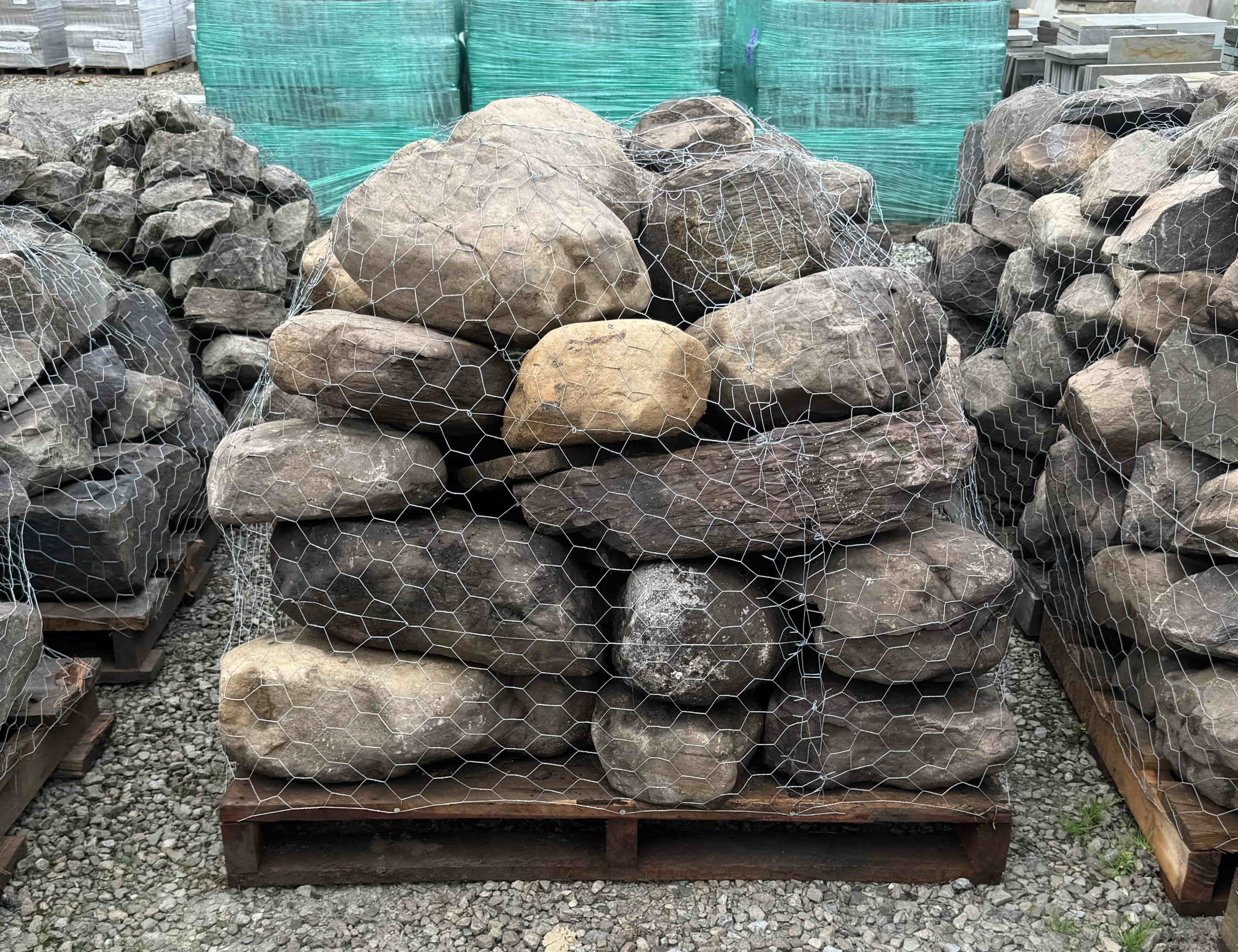 Natural Stone is sold by the pallet or loose by the pound unless otherwise noted. It is used for stepping stones, small retaining walls, patios and water gardens.